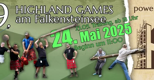 Die 9. Highland Games am Falkensteinseepowered by Haferkamp Gerüstbau finden auch in diesem Jahr wieder statt. Beginn ist um 11 Uhr, am 23.05 findet ab 18 Uhr das Training statt.